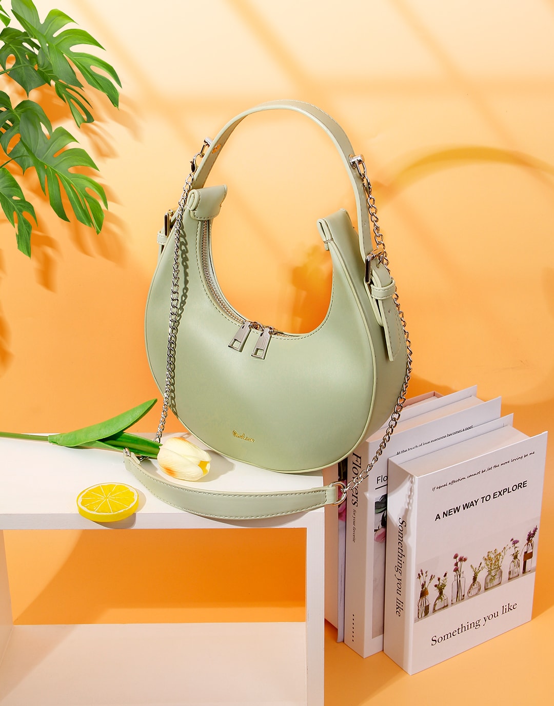 YENESY women crescent design bags and underarm & top handle bag.Especial light green color is beautiful enough.Have a look about it.